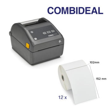 COMBIDEAL – Zebra ZD421d (USB, Direct Thermal) én Zebra verzendlabels (102 x 152 mm / A6) – 12 rollen